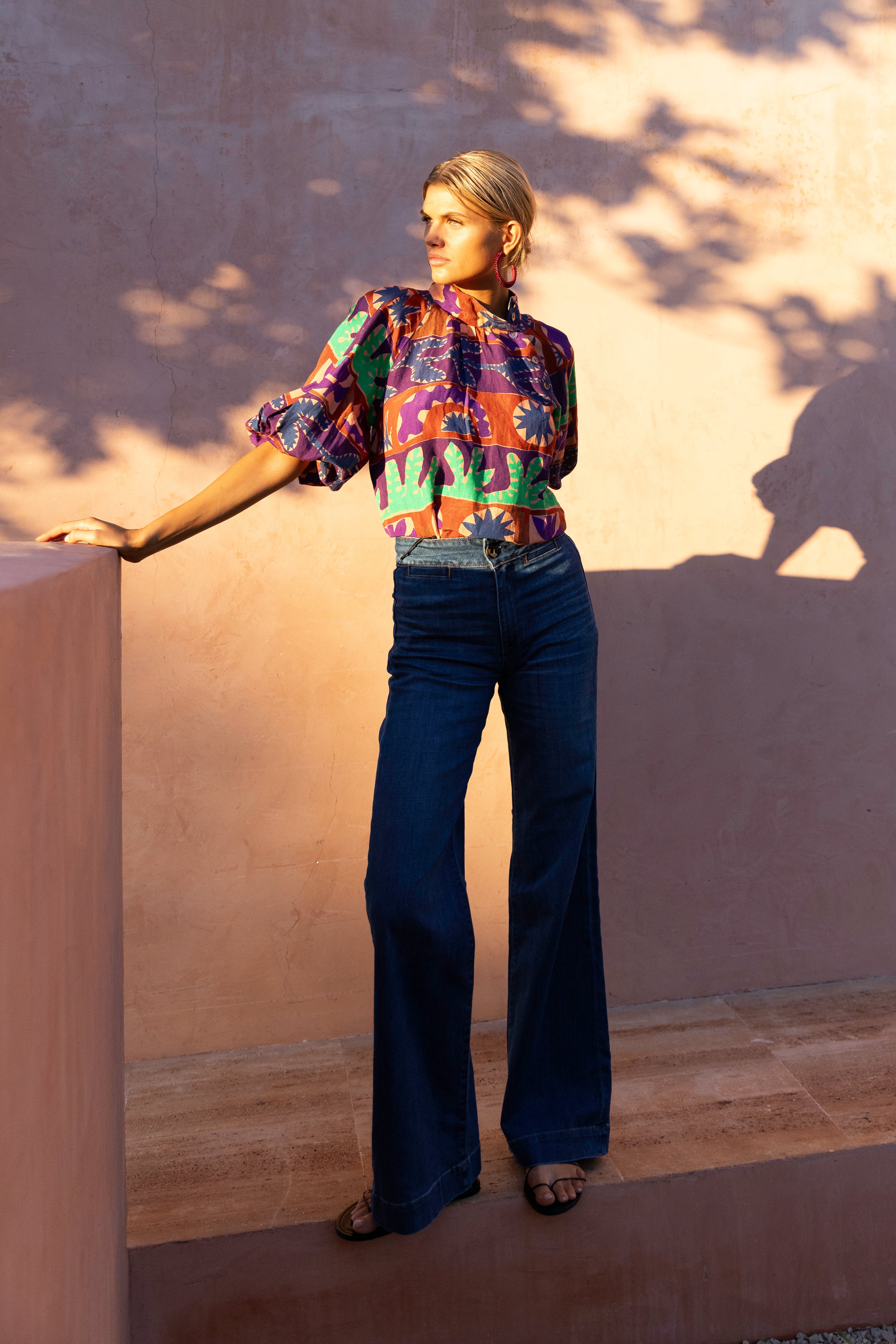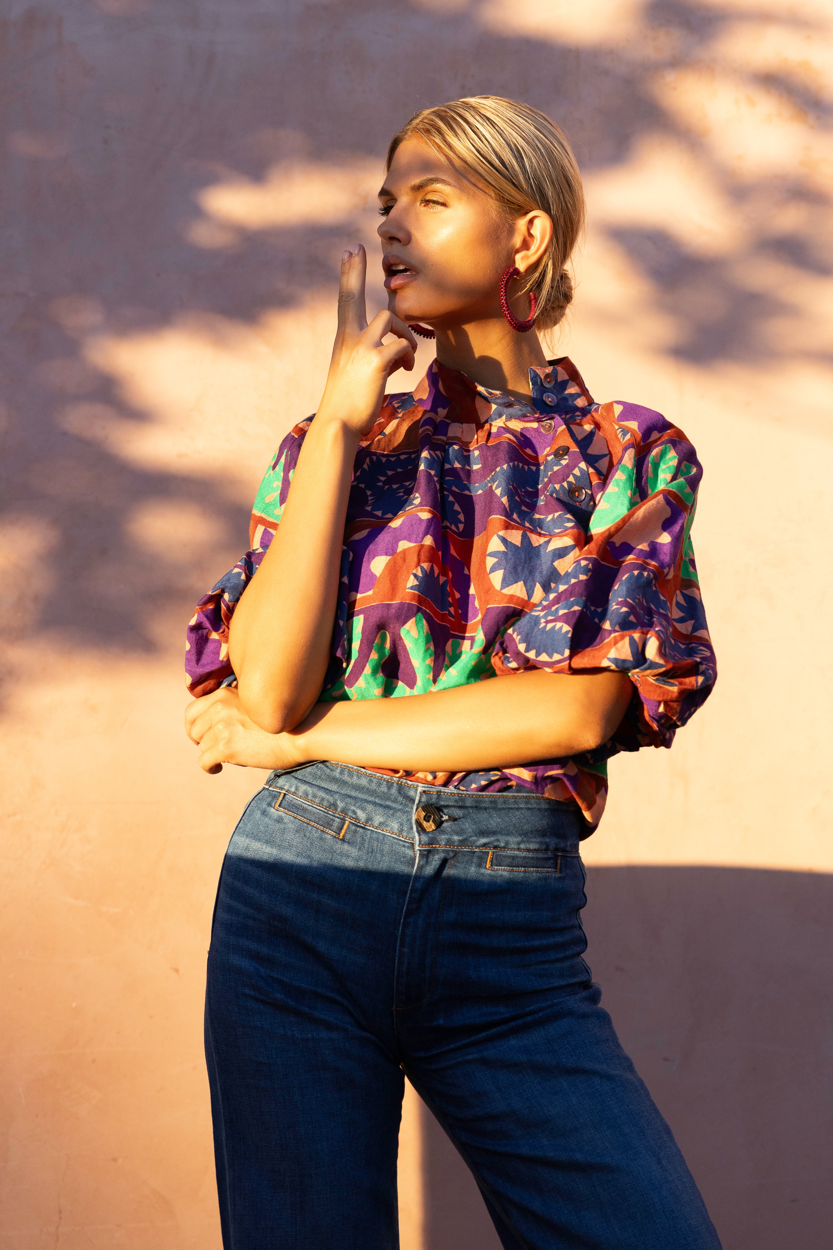 - Elasticized puff sleeves
