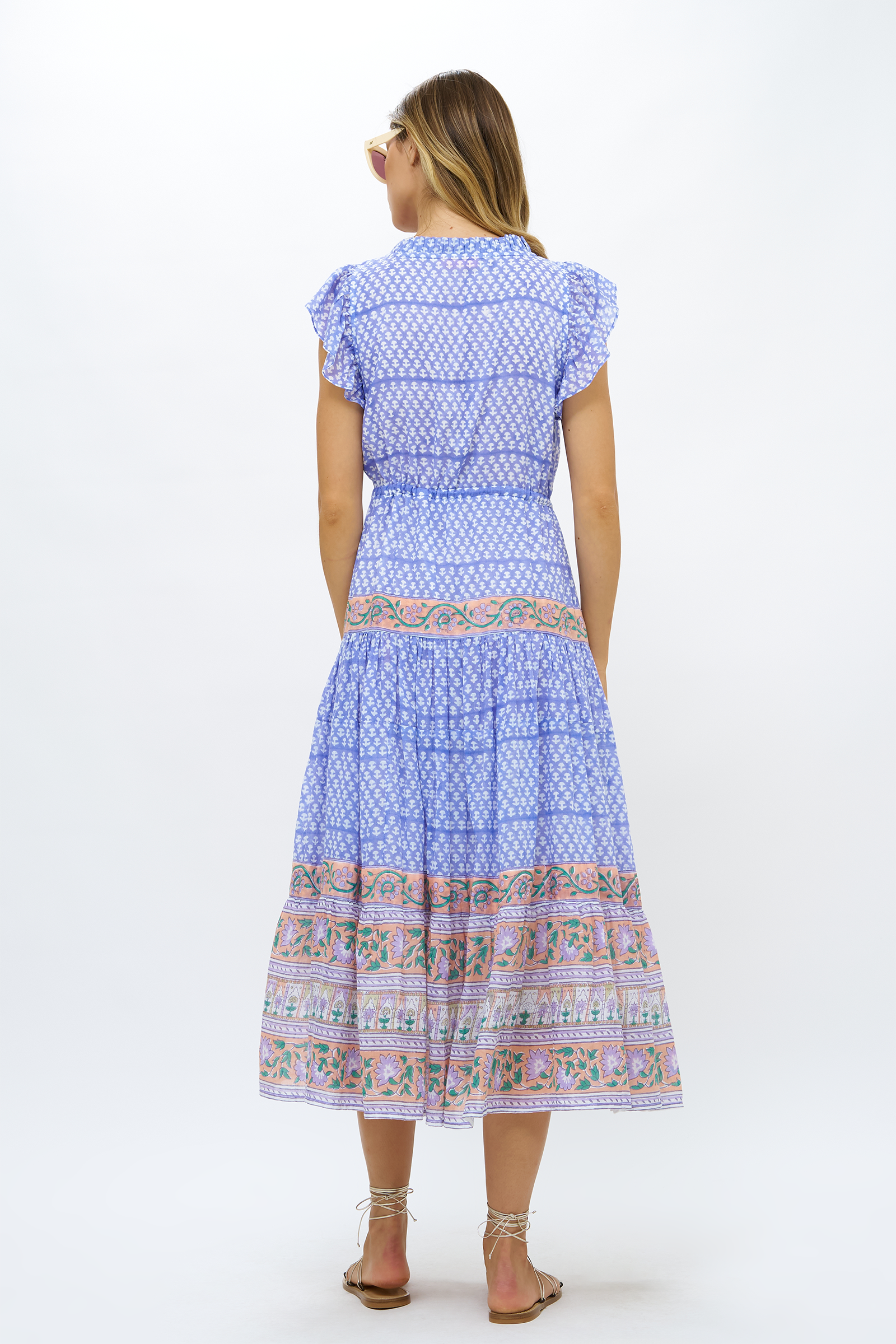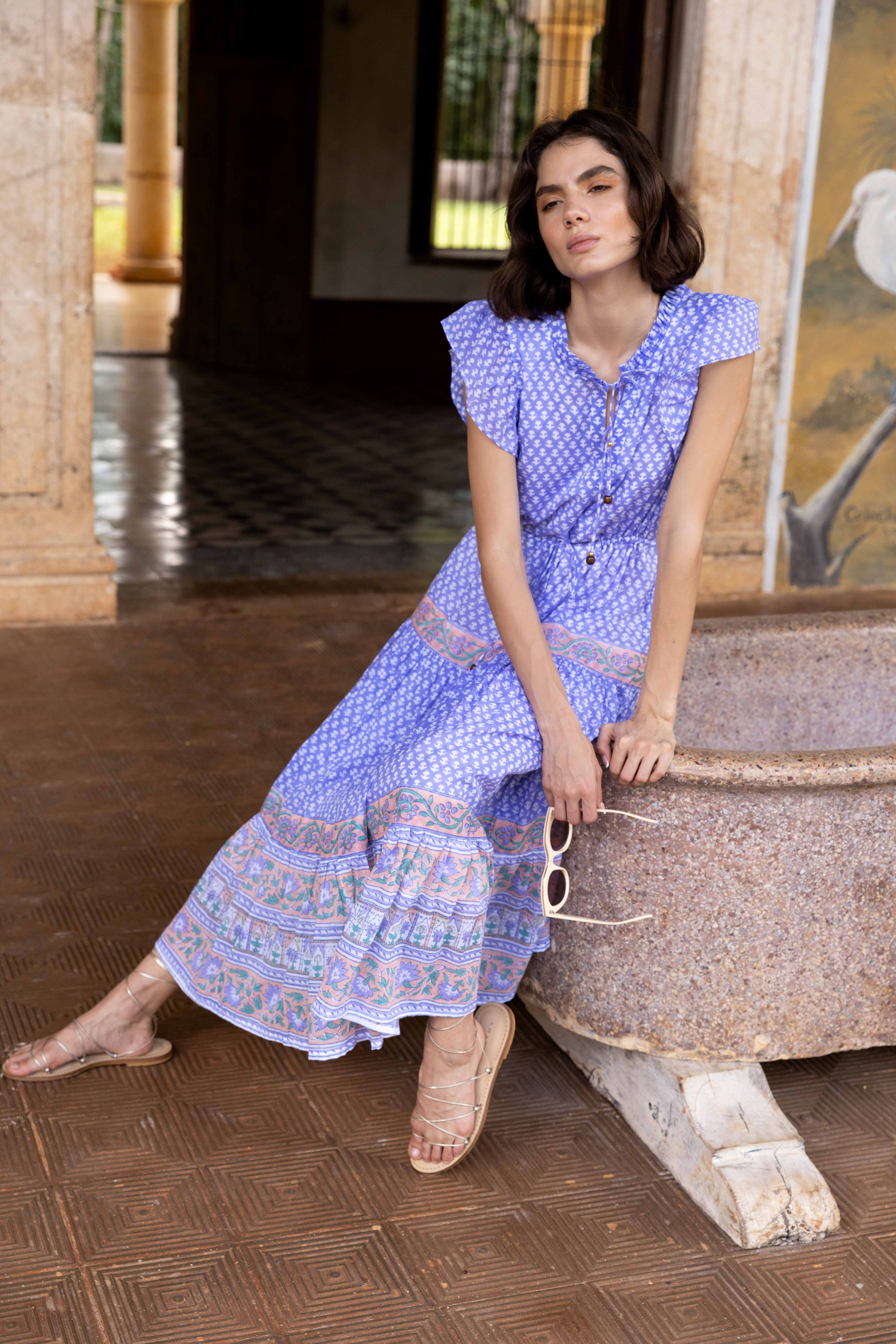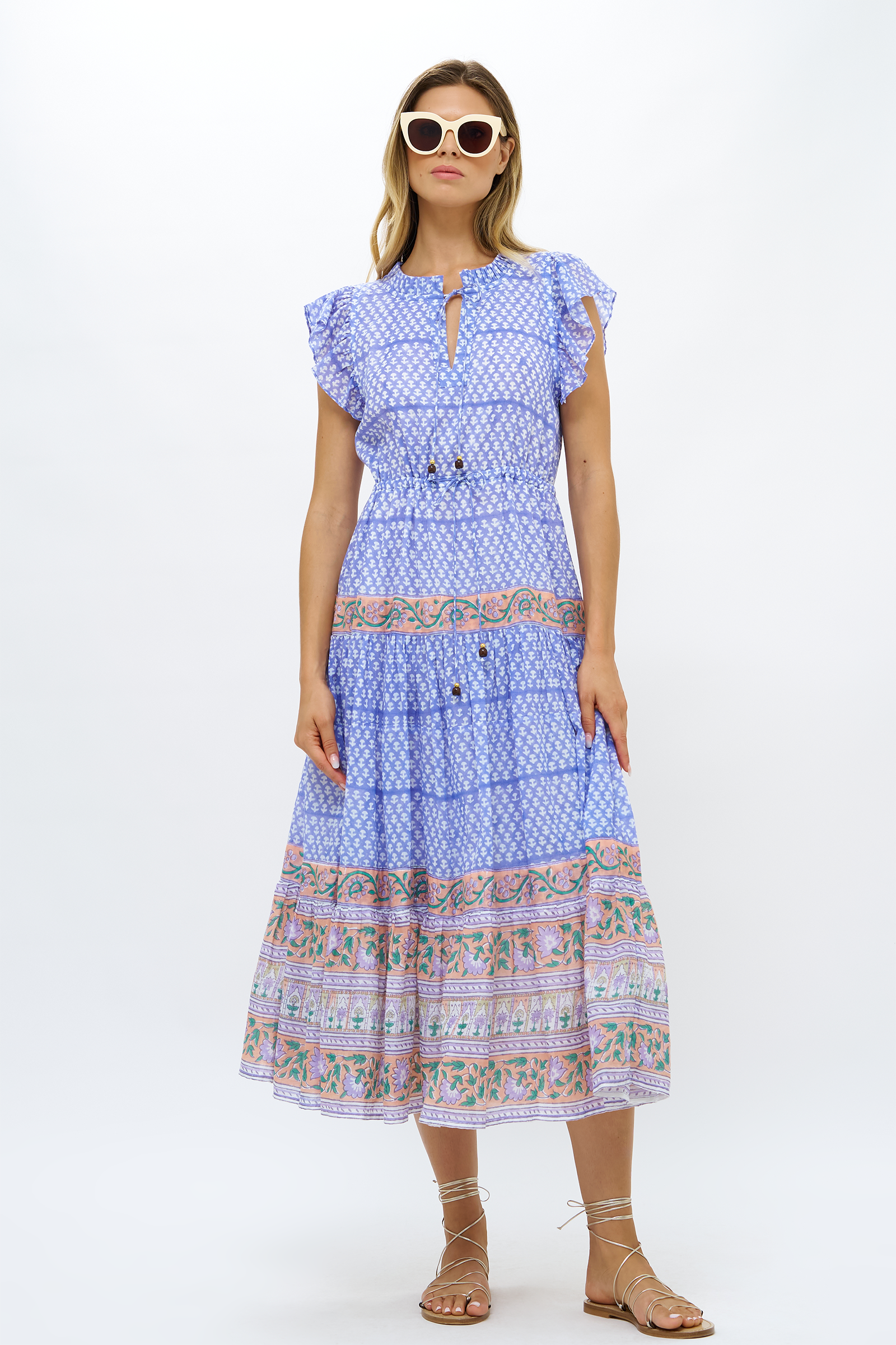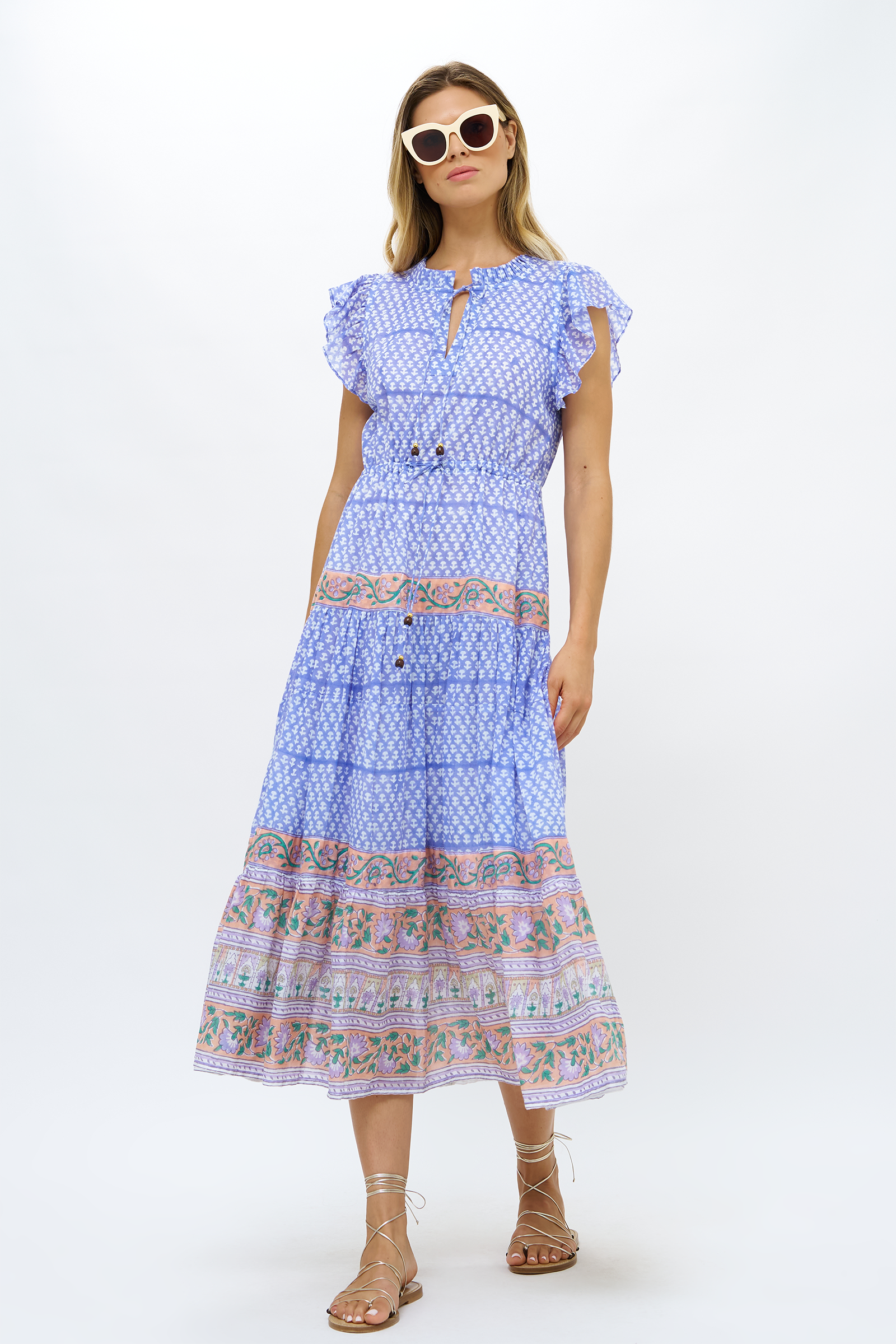 Our classic Cinched Flirty Dress in a Midi style with adjustable ties at the waist and neckline that makes for a perfect fit.