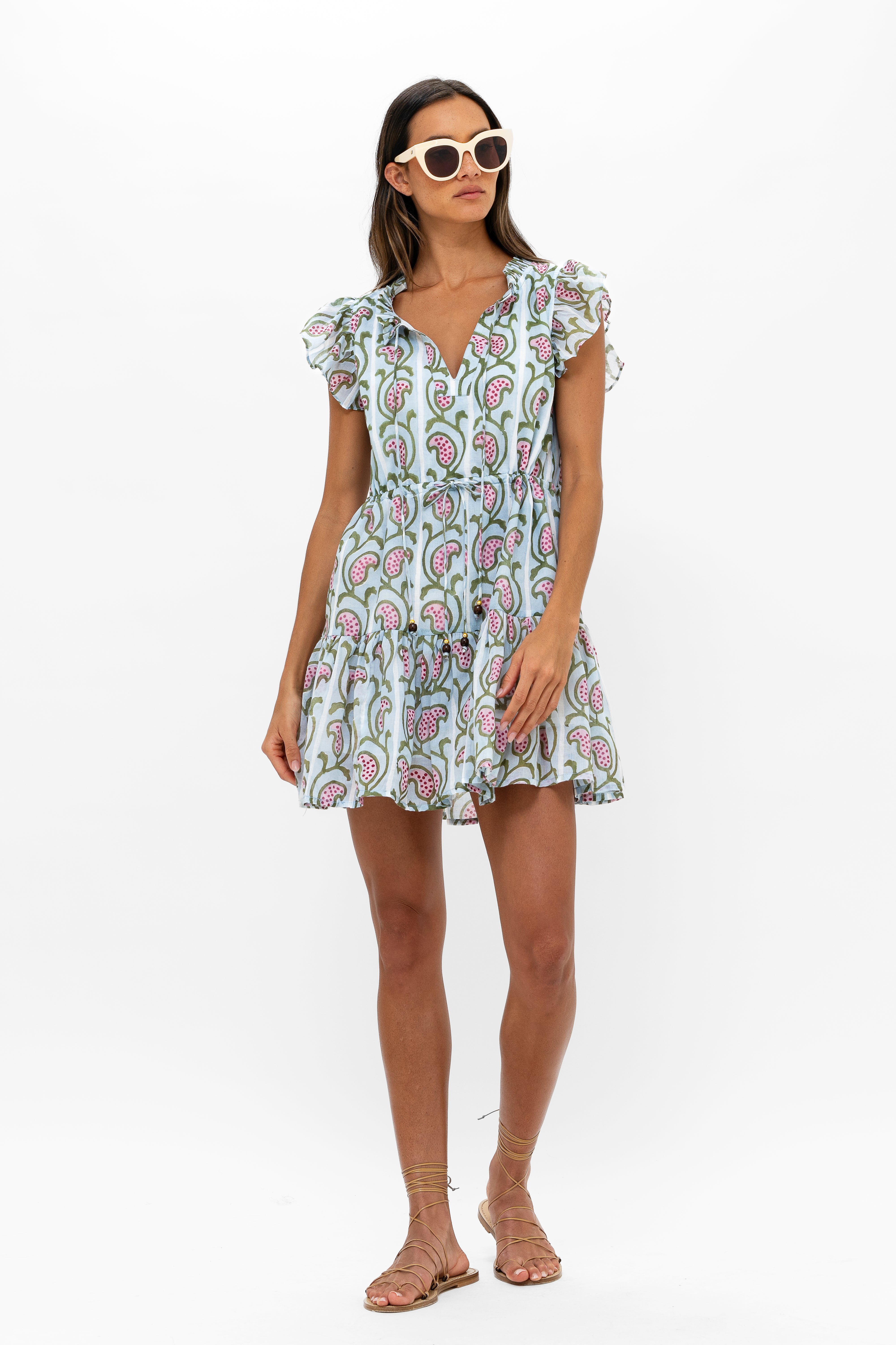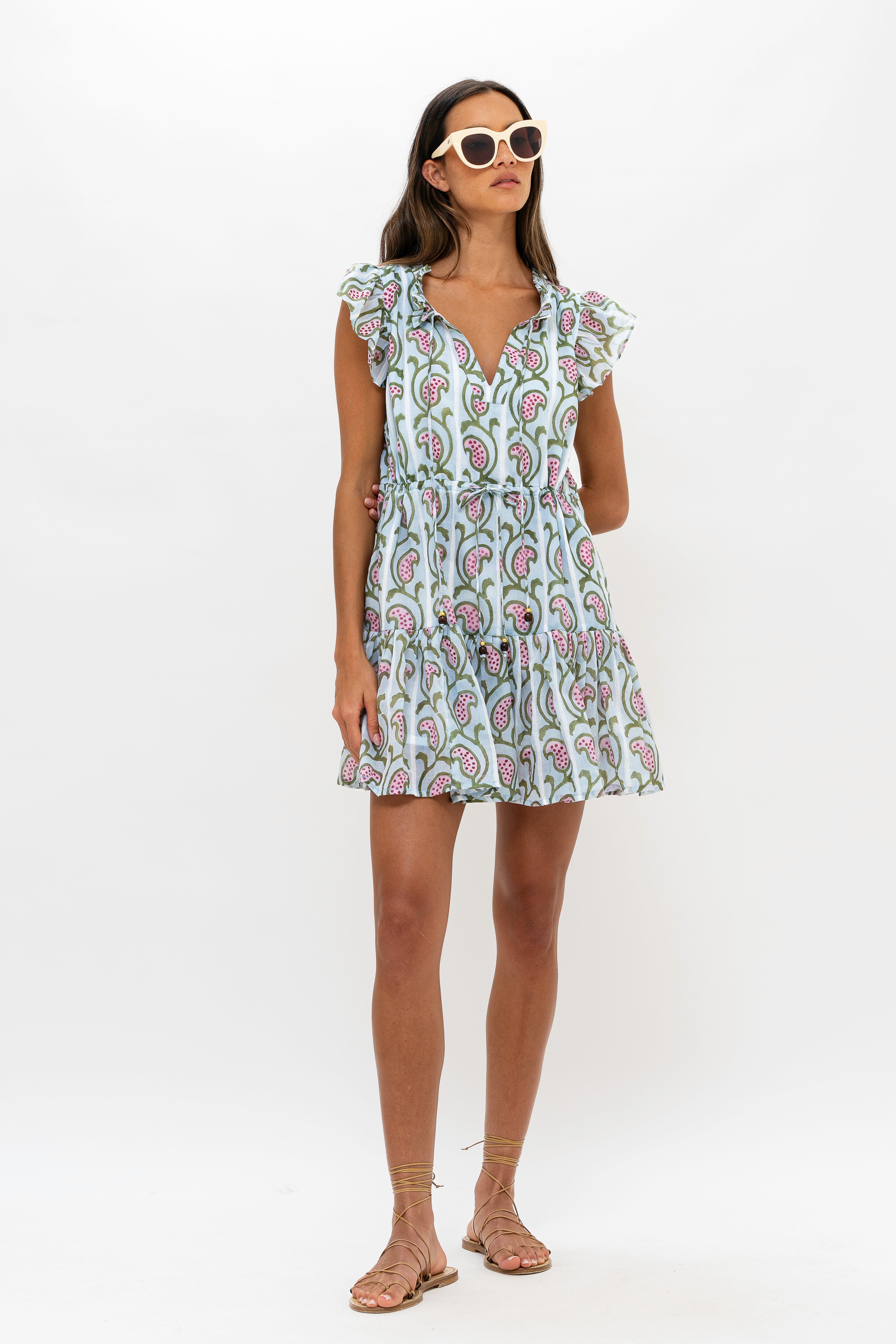 - Adjustable ties at the waist