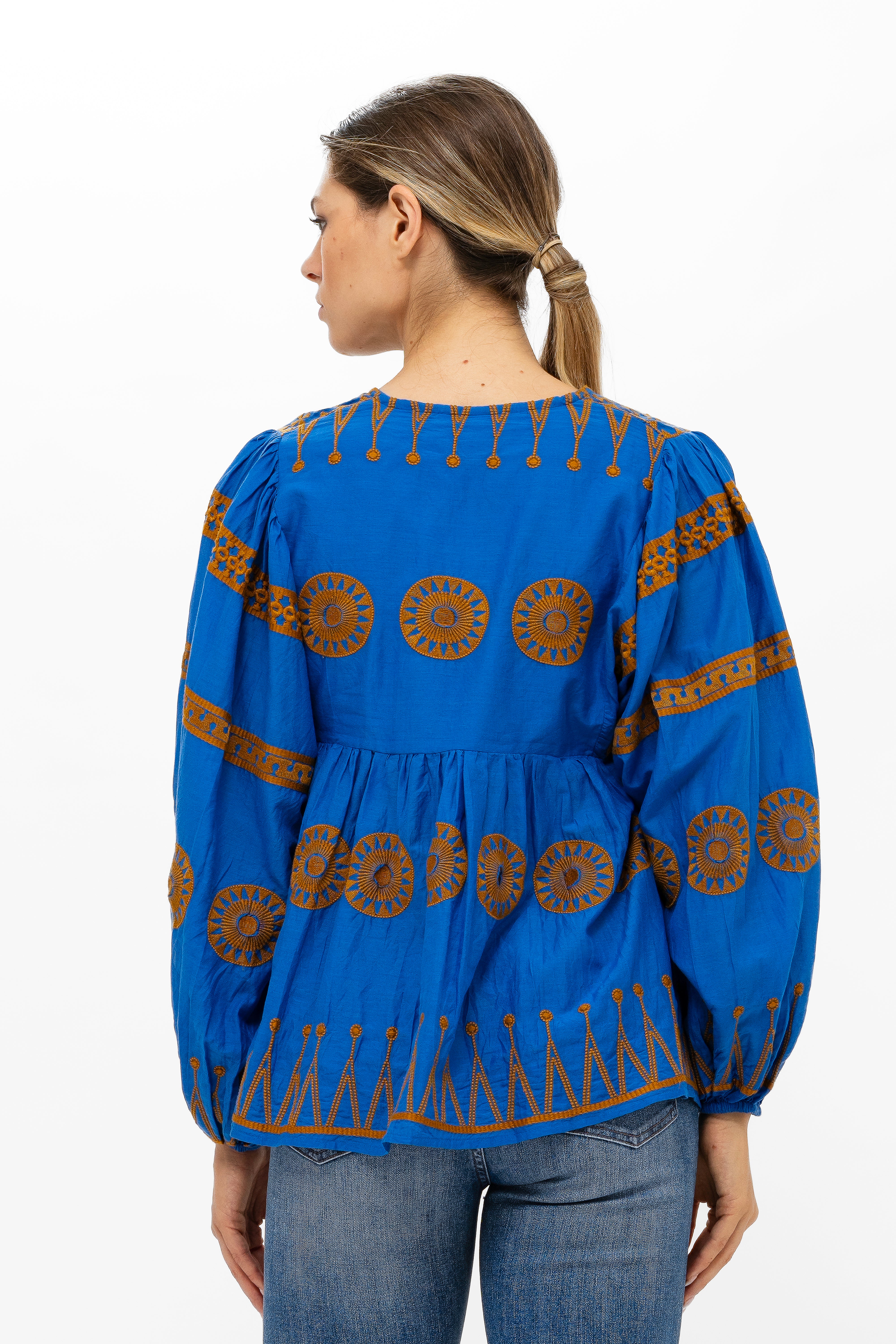 Our classic Mandarin Balloon Top gets an update with beautiful hand-embroidery