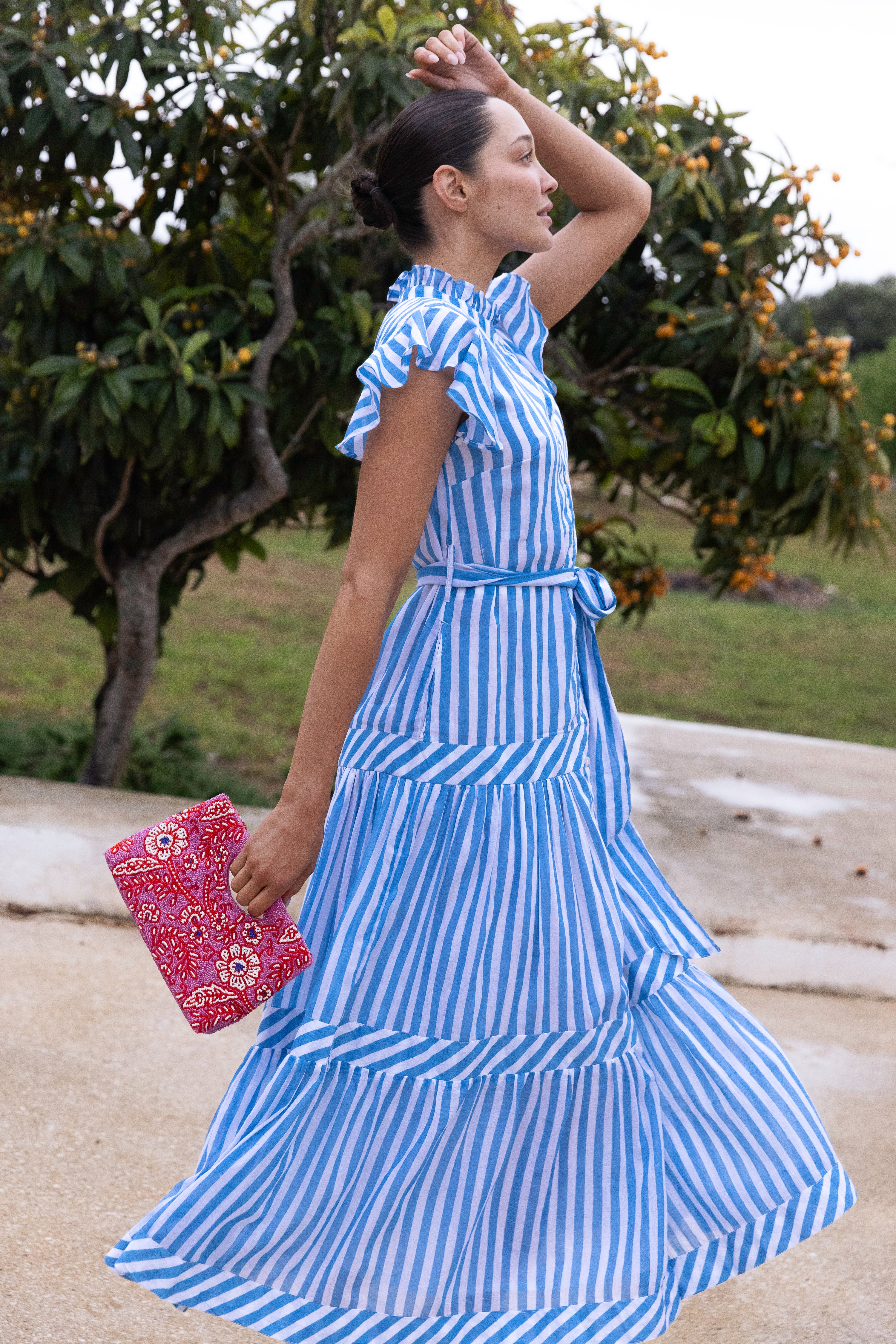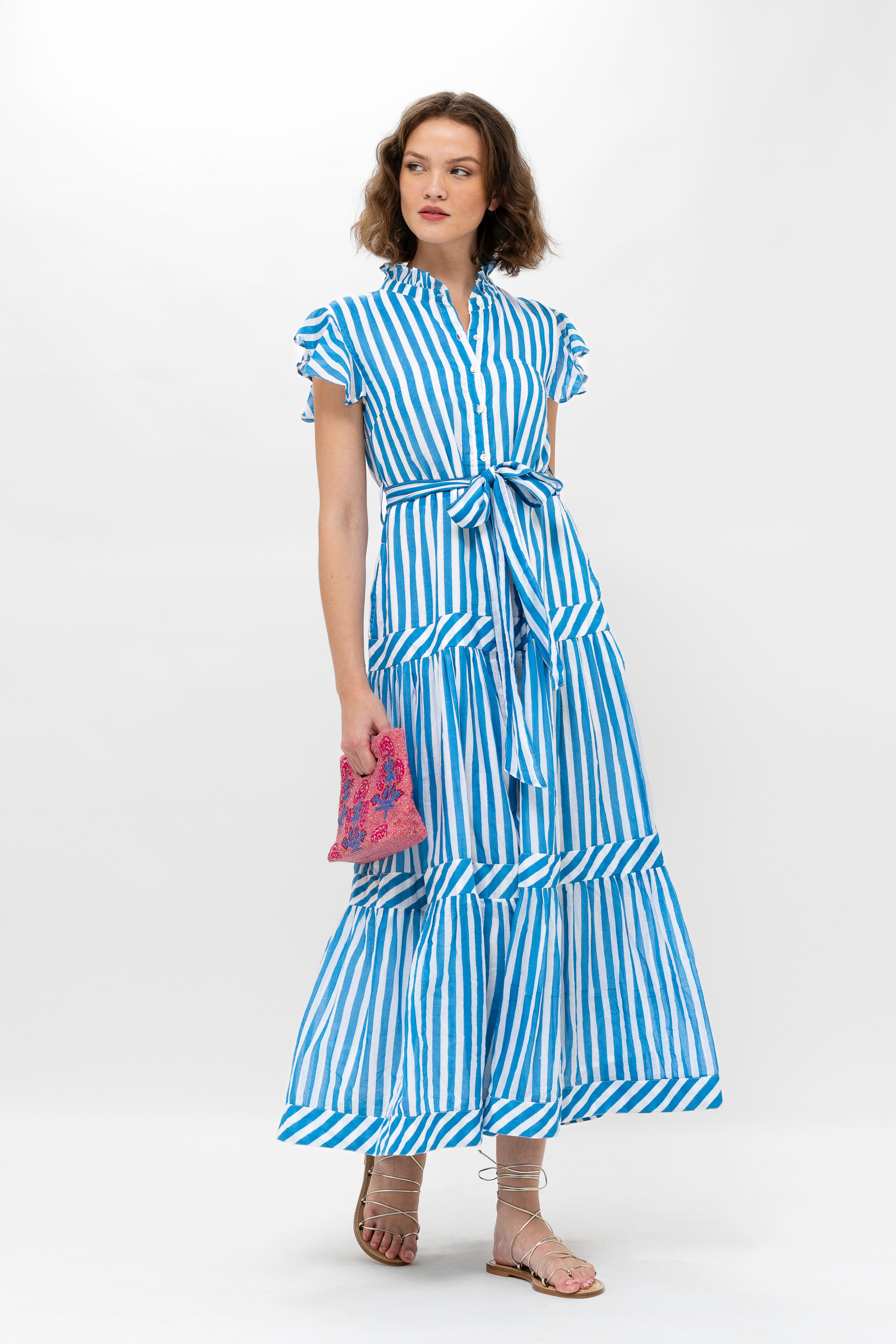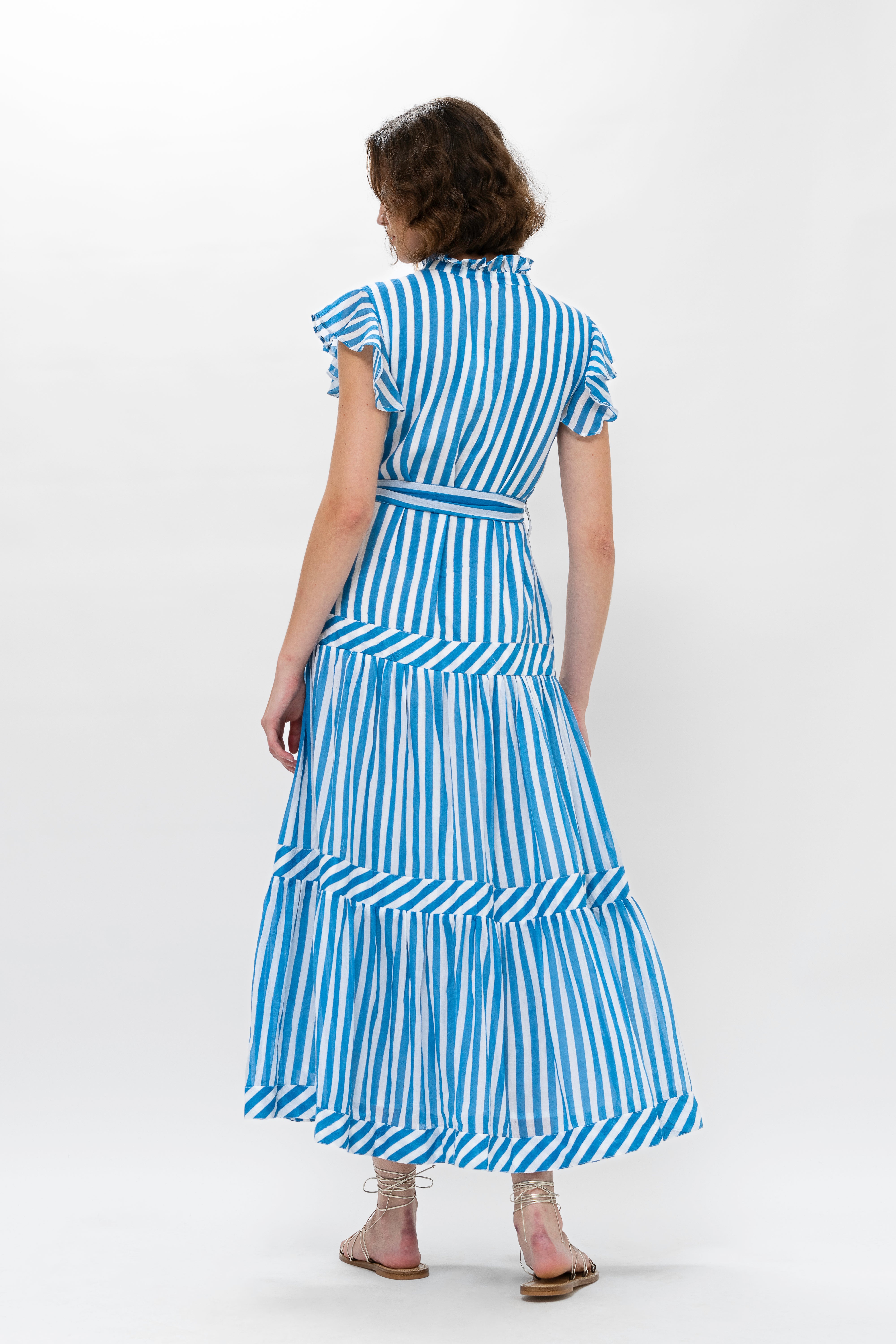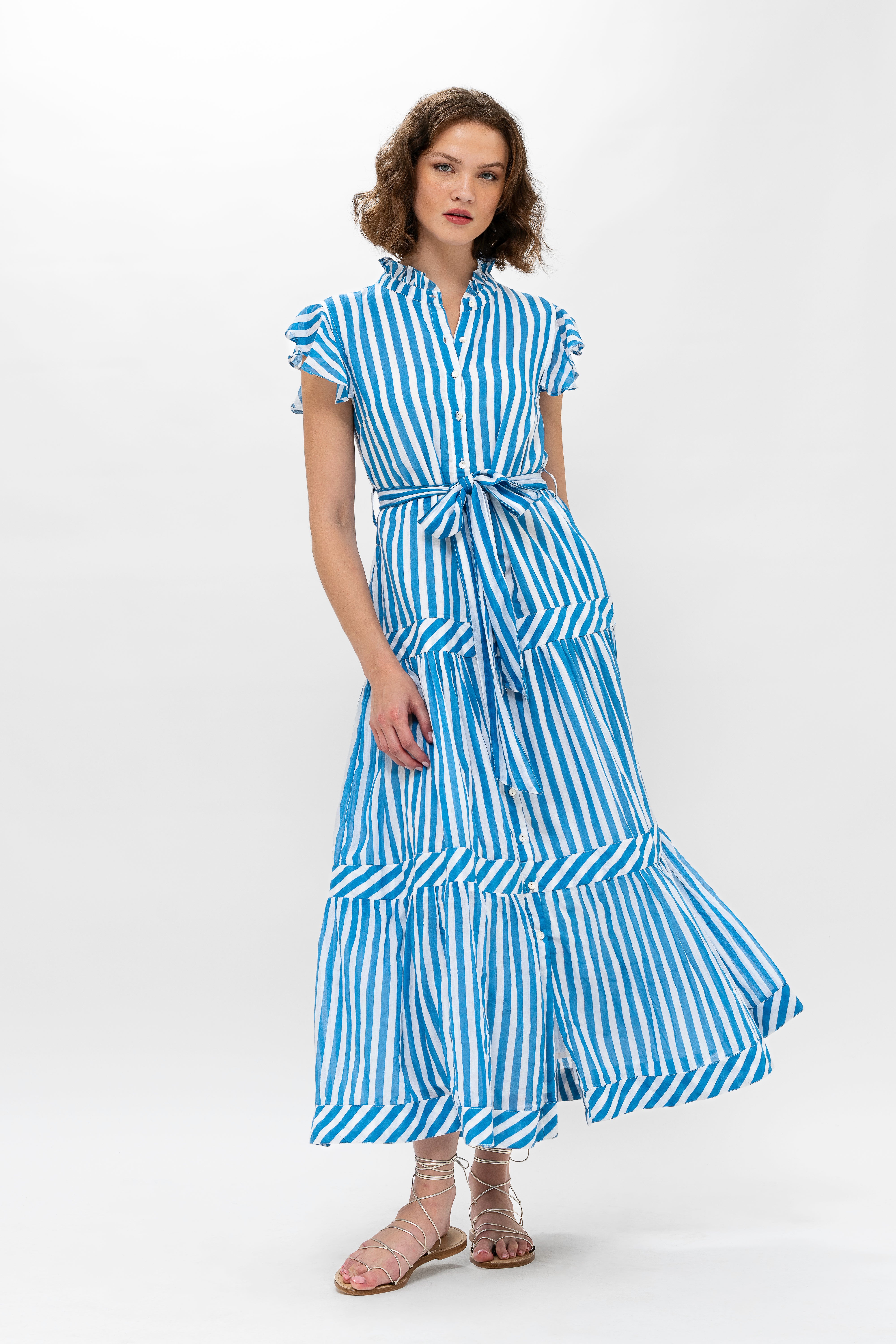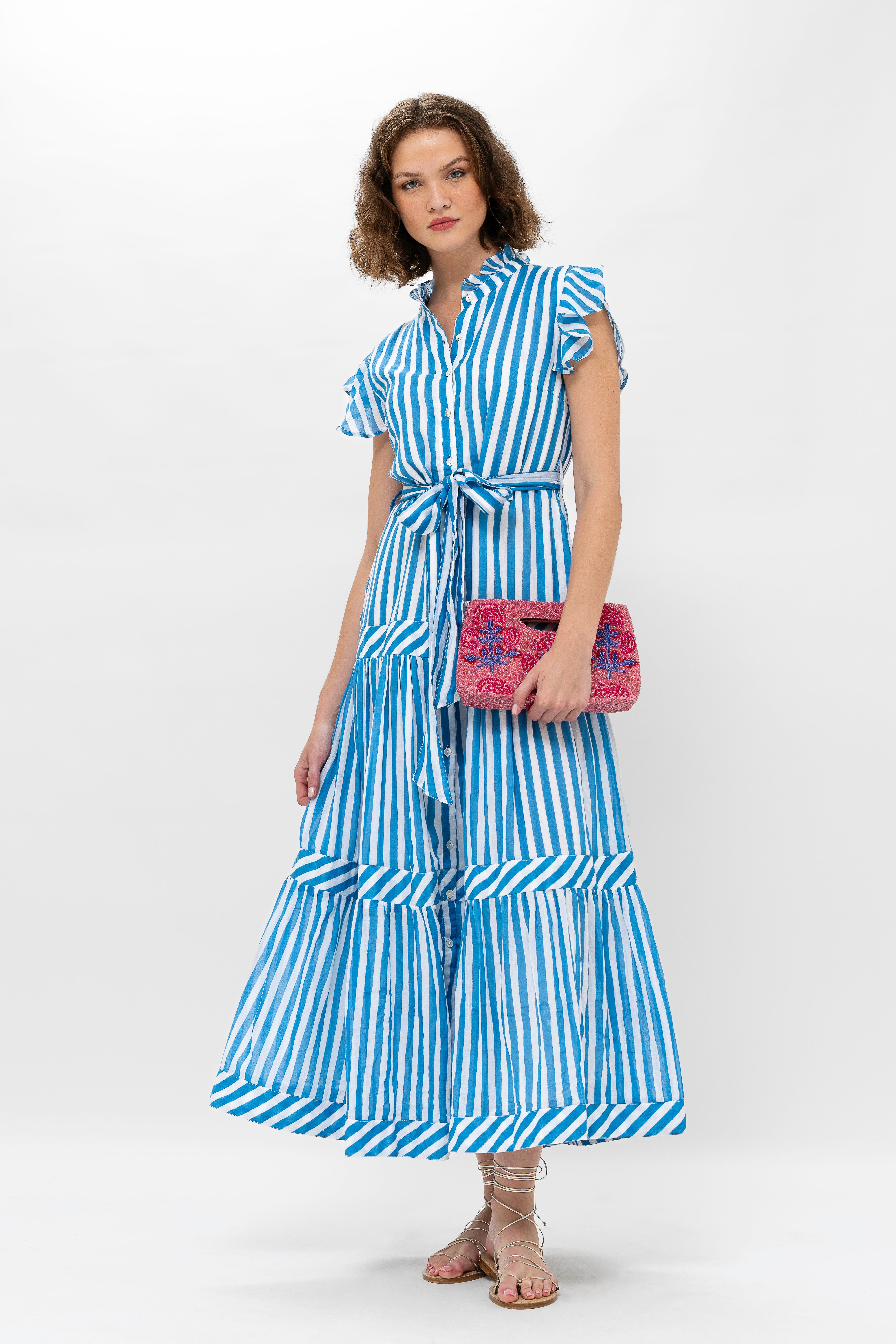 Ruffle Collar Button Maxi- Playa Blue