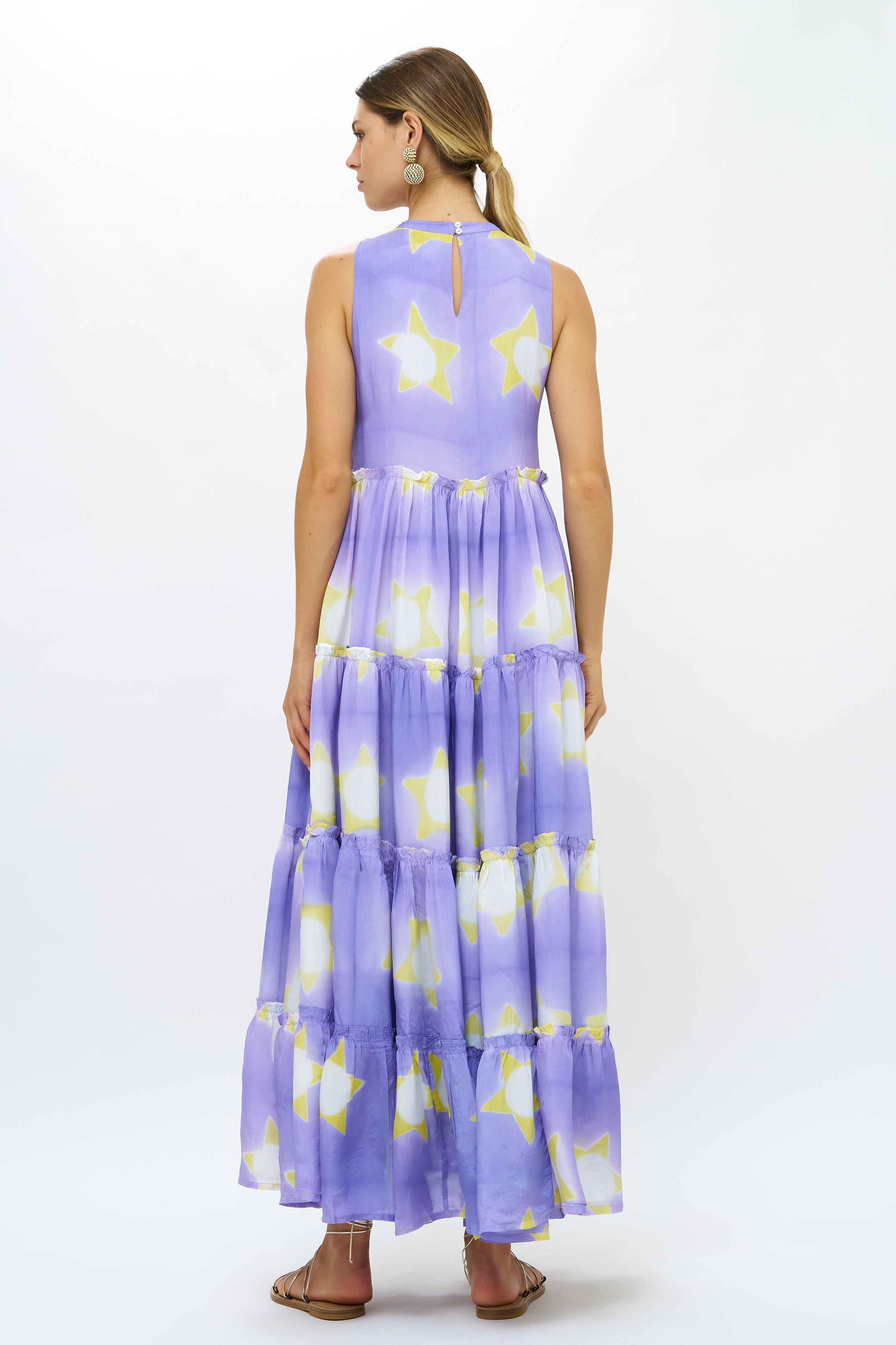 - Button closures at the back of the neck