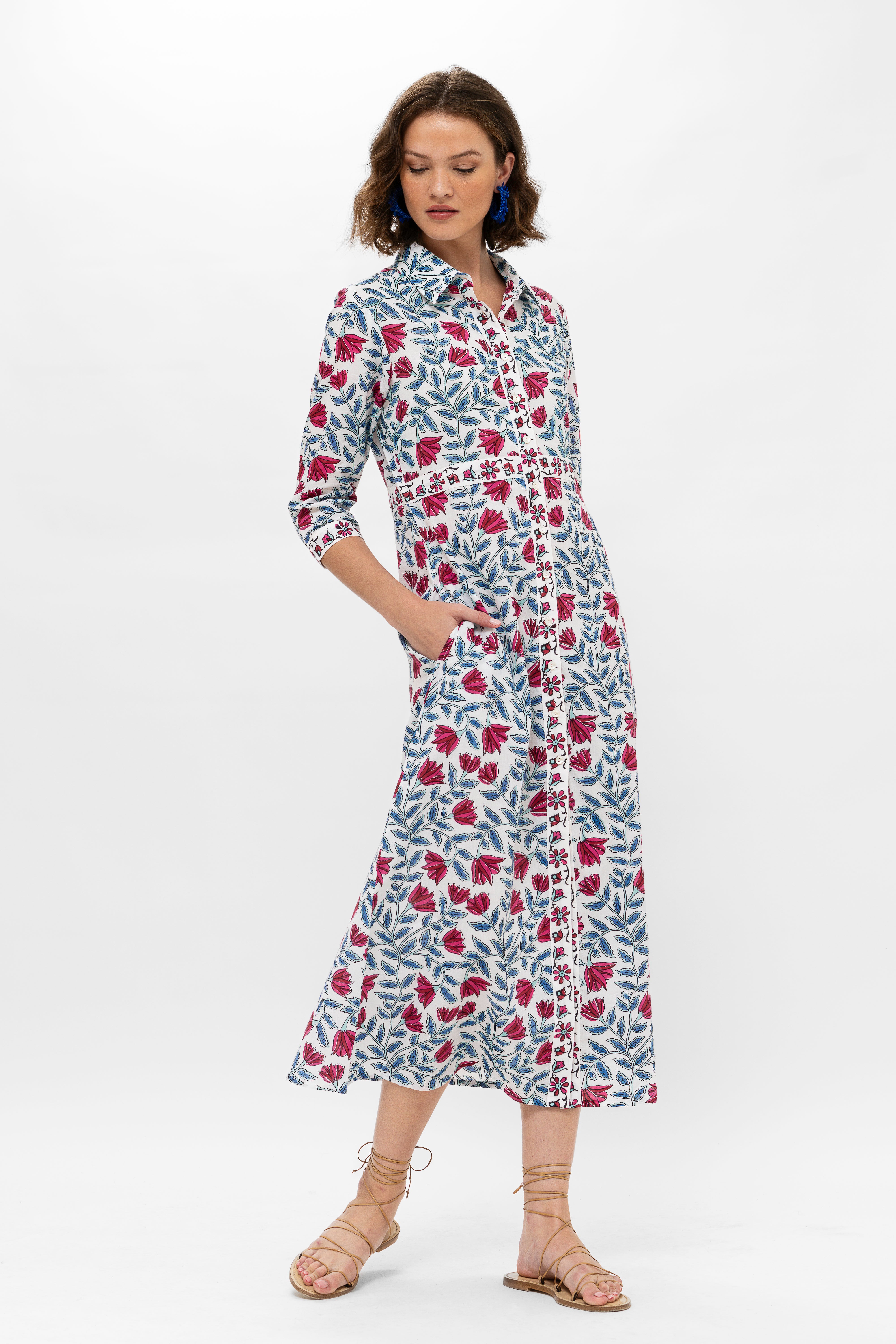 Our classic shirt dress gets an update with contrasting trim detailing at the waist