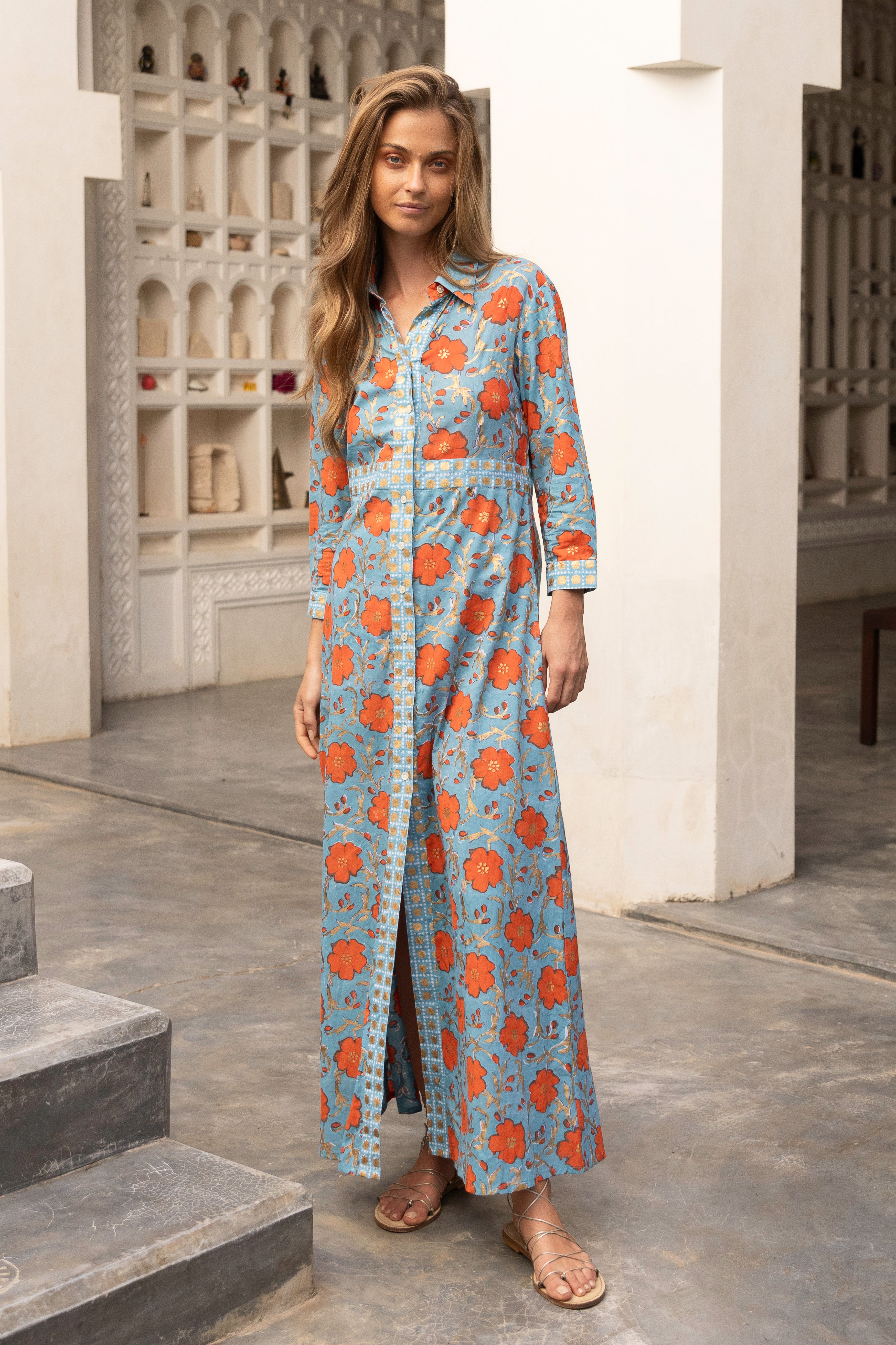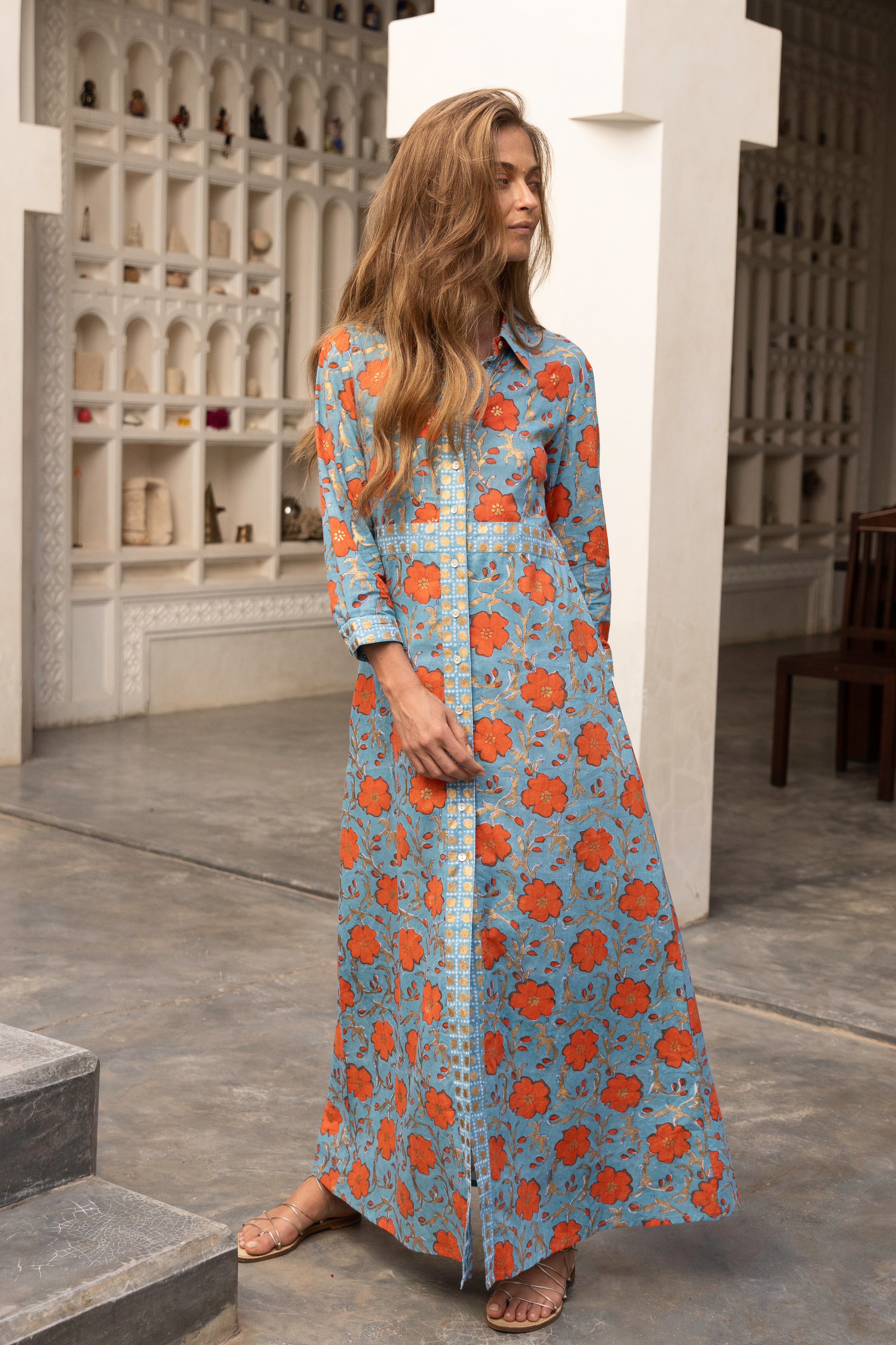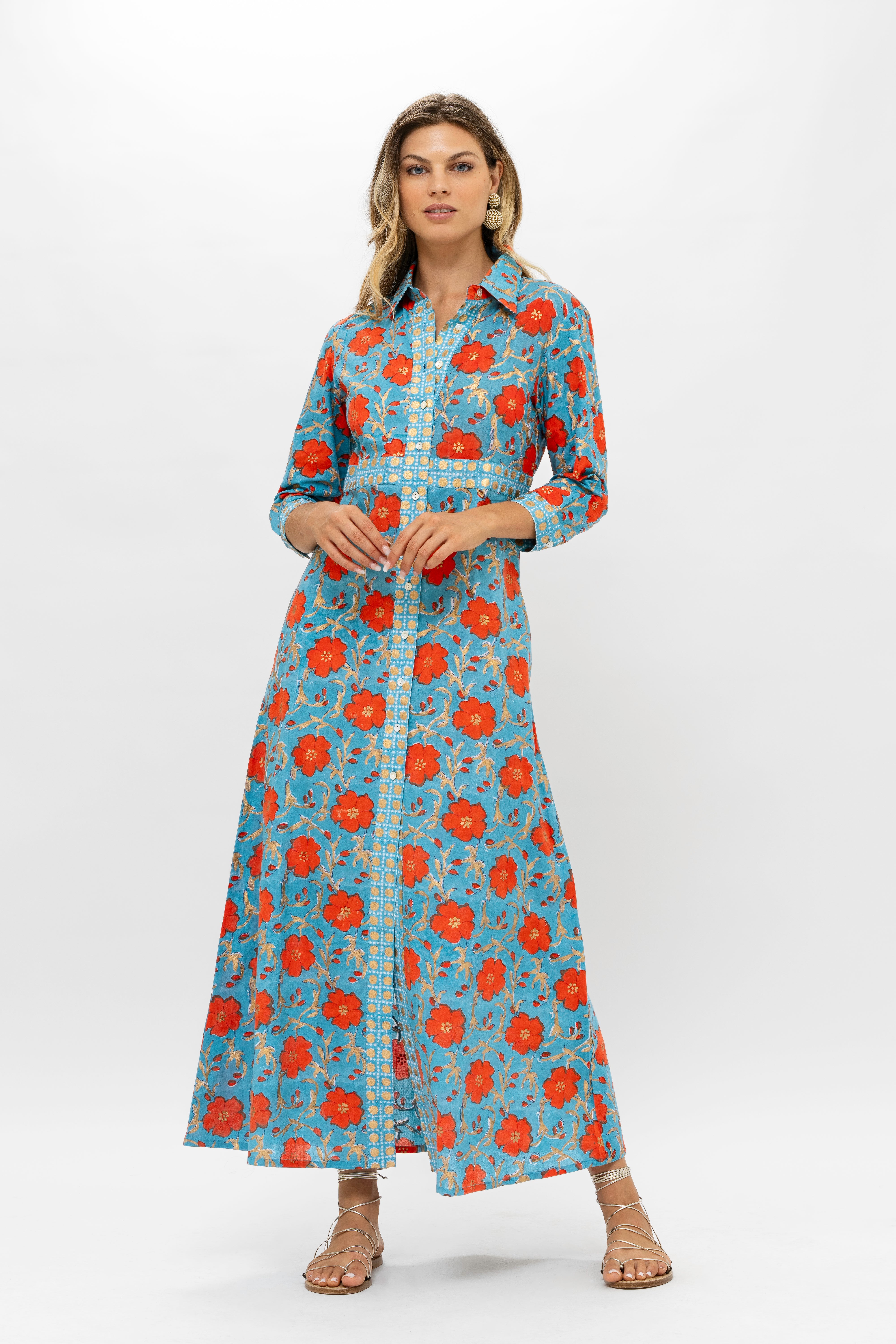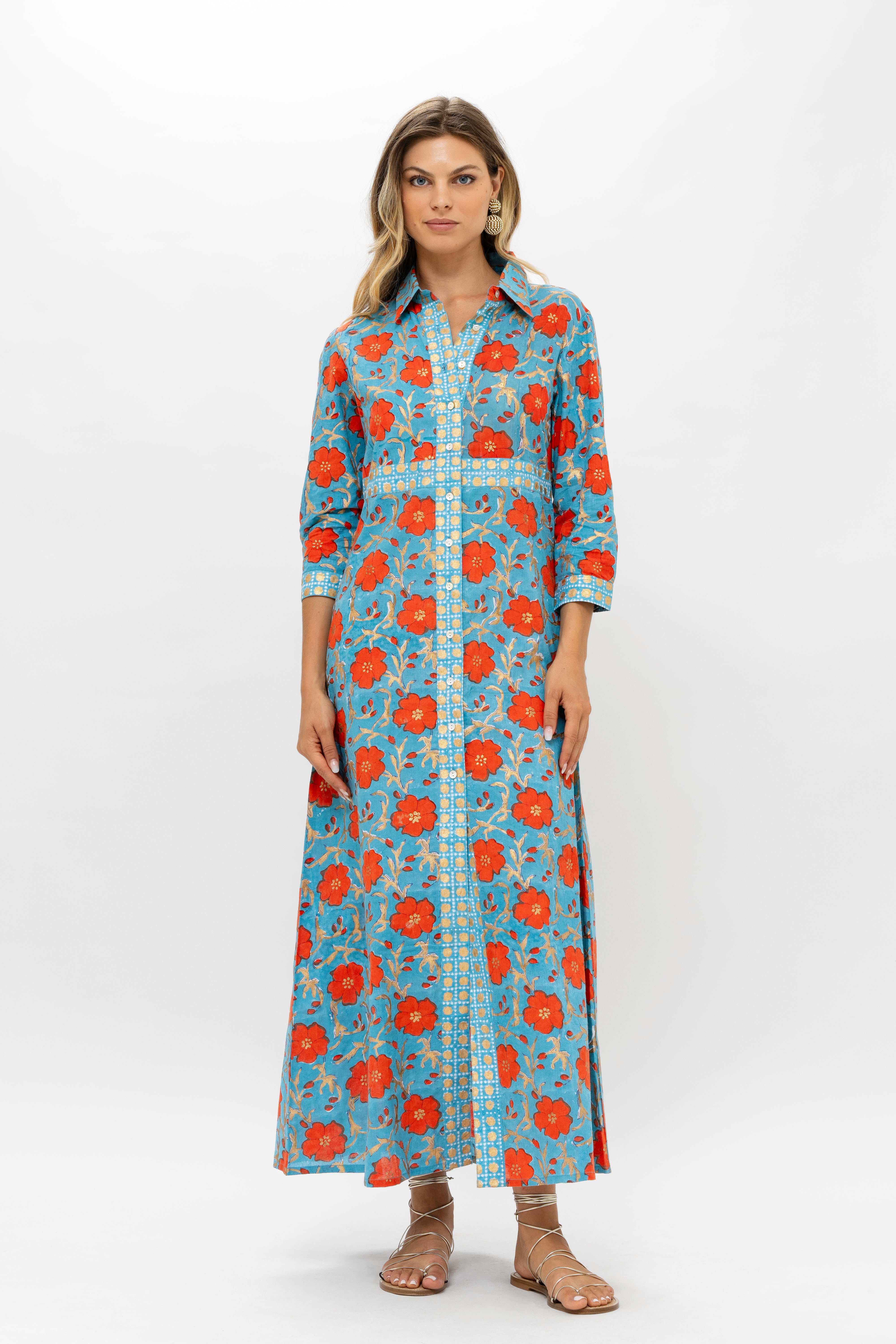 Our classic shirt dress gets an update with contrasting trim detailing at the waist