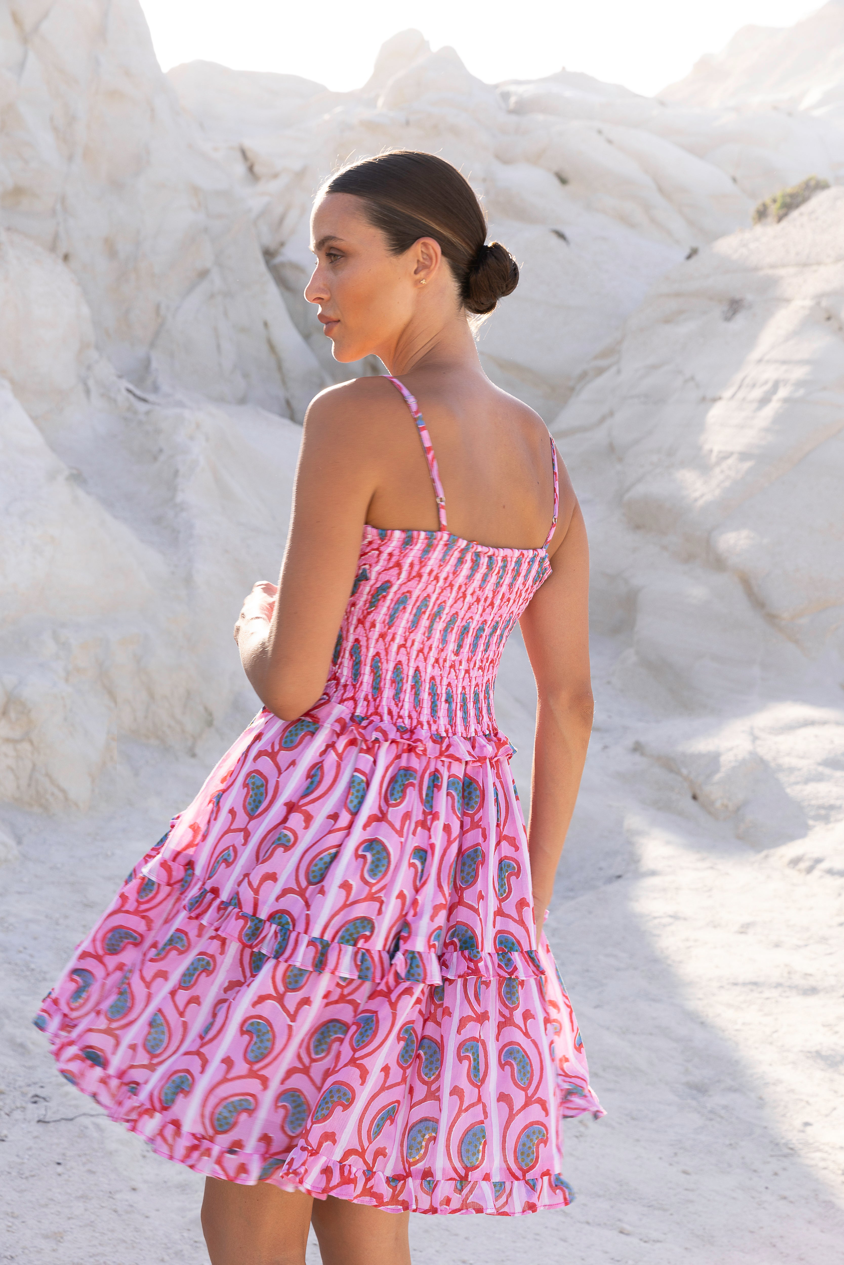Our classic Cinched Flirty Dress in a Midi style with adjustable ties at the waist and neckline that makes for a perfect fit.