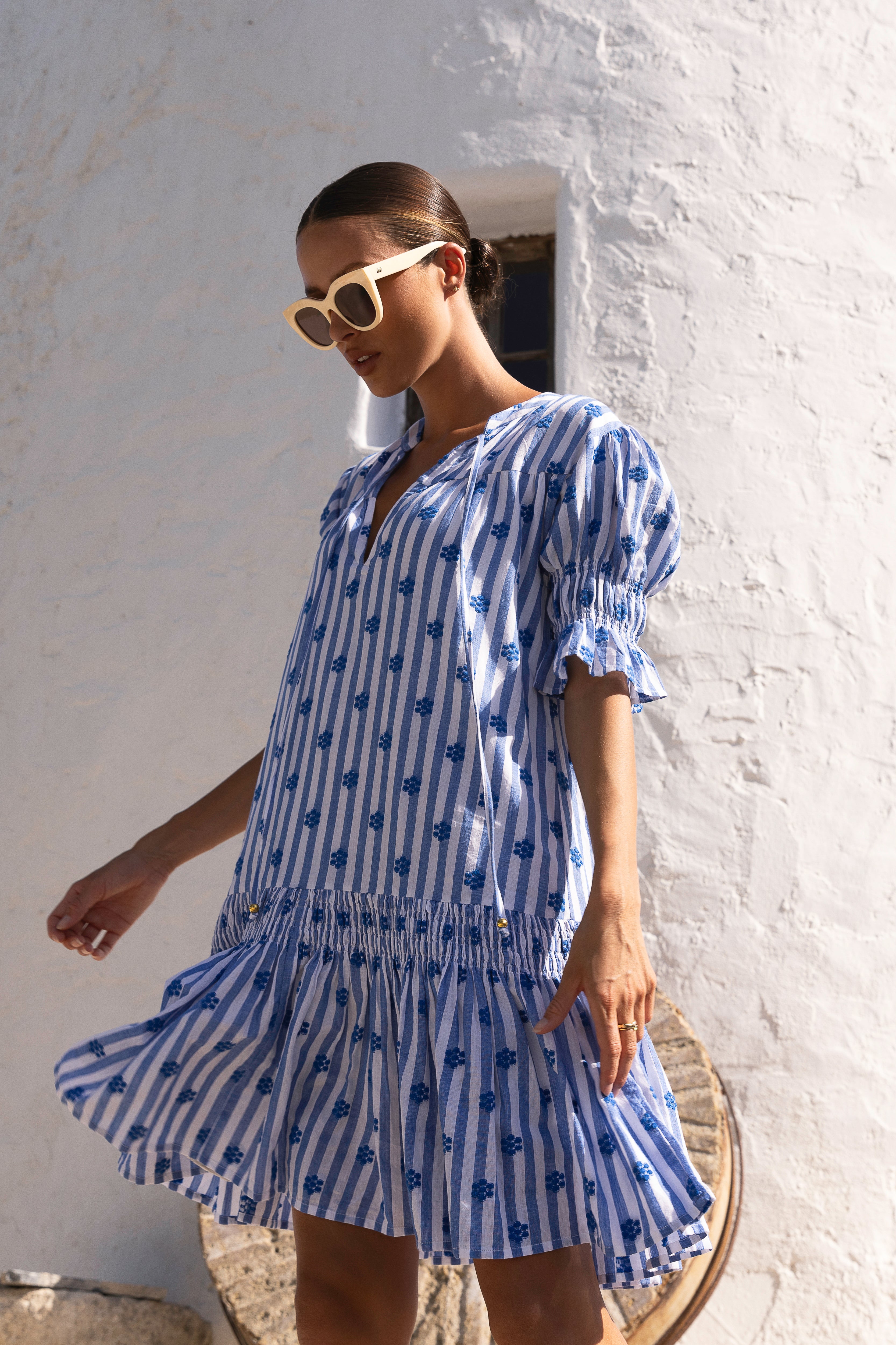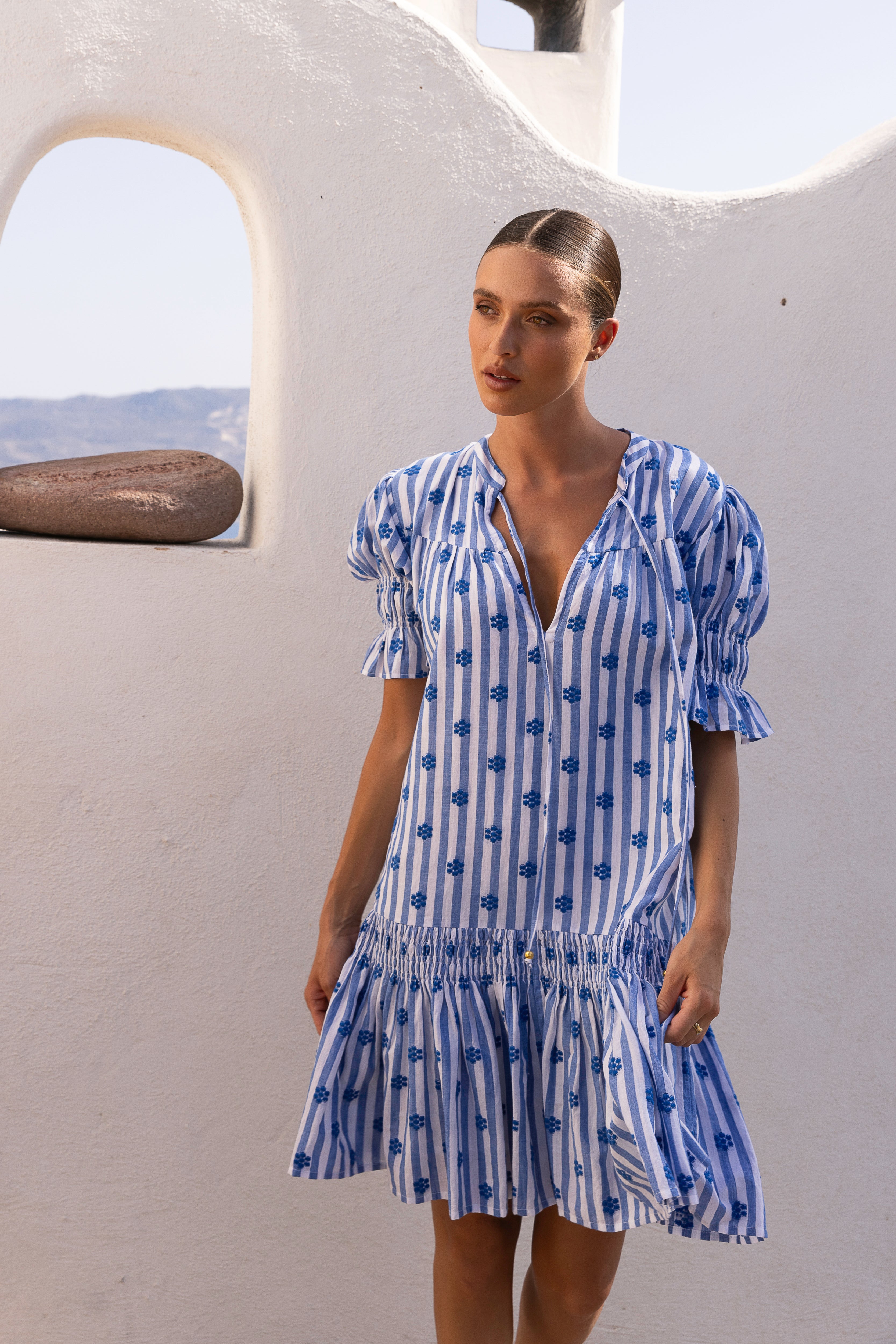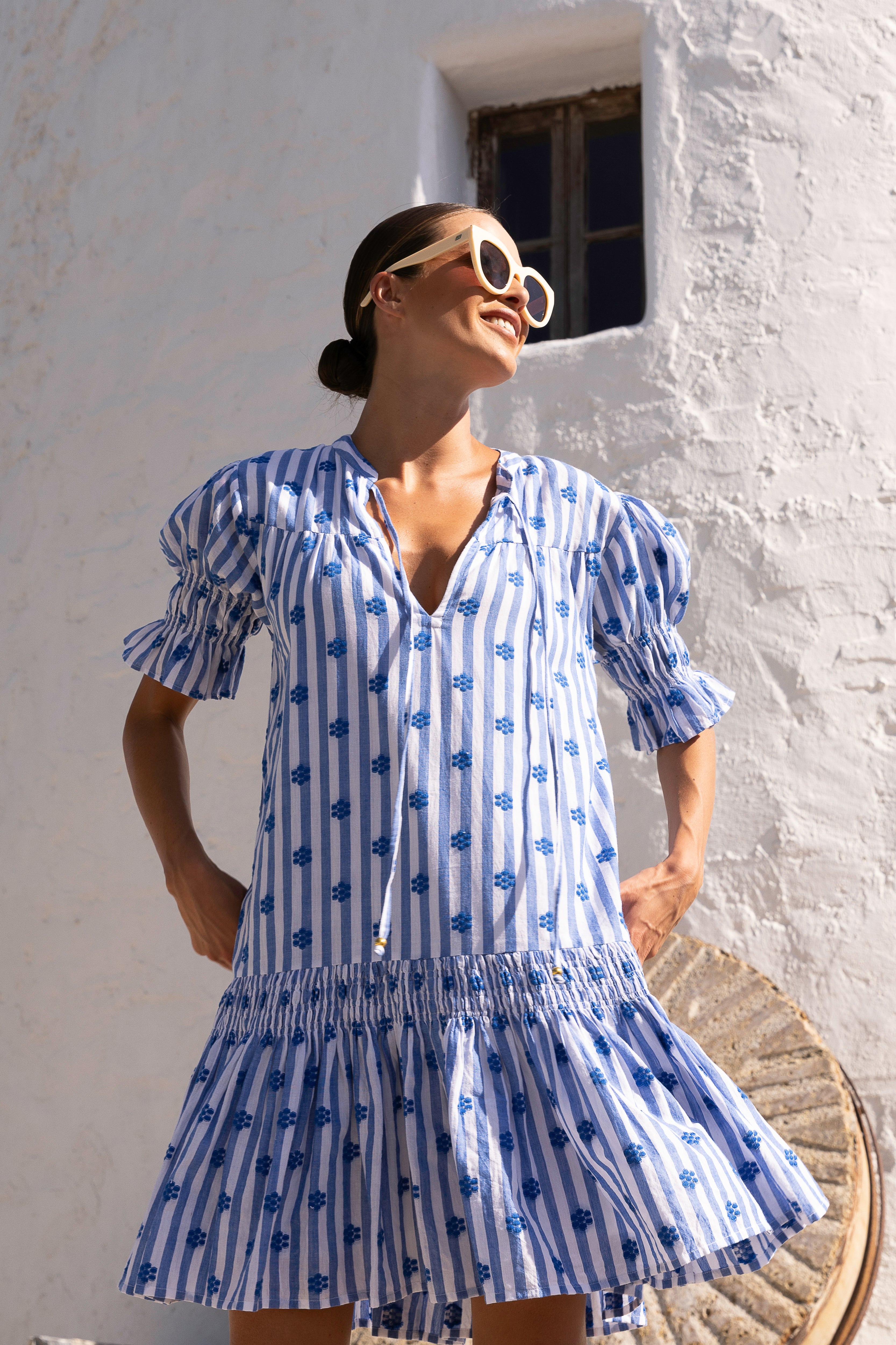 - Crafted from embroidered woven cotton