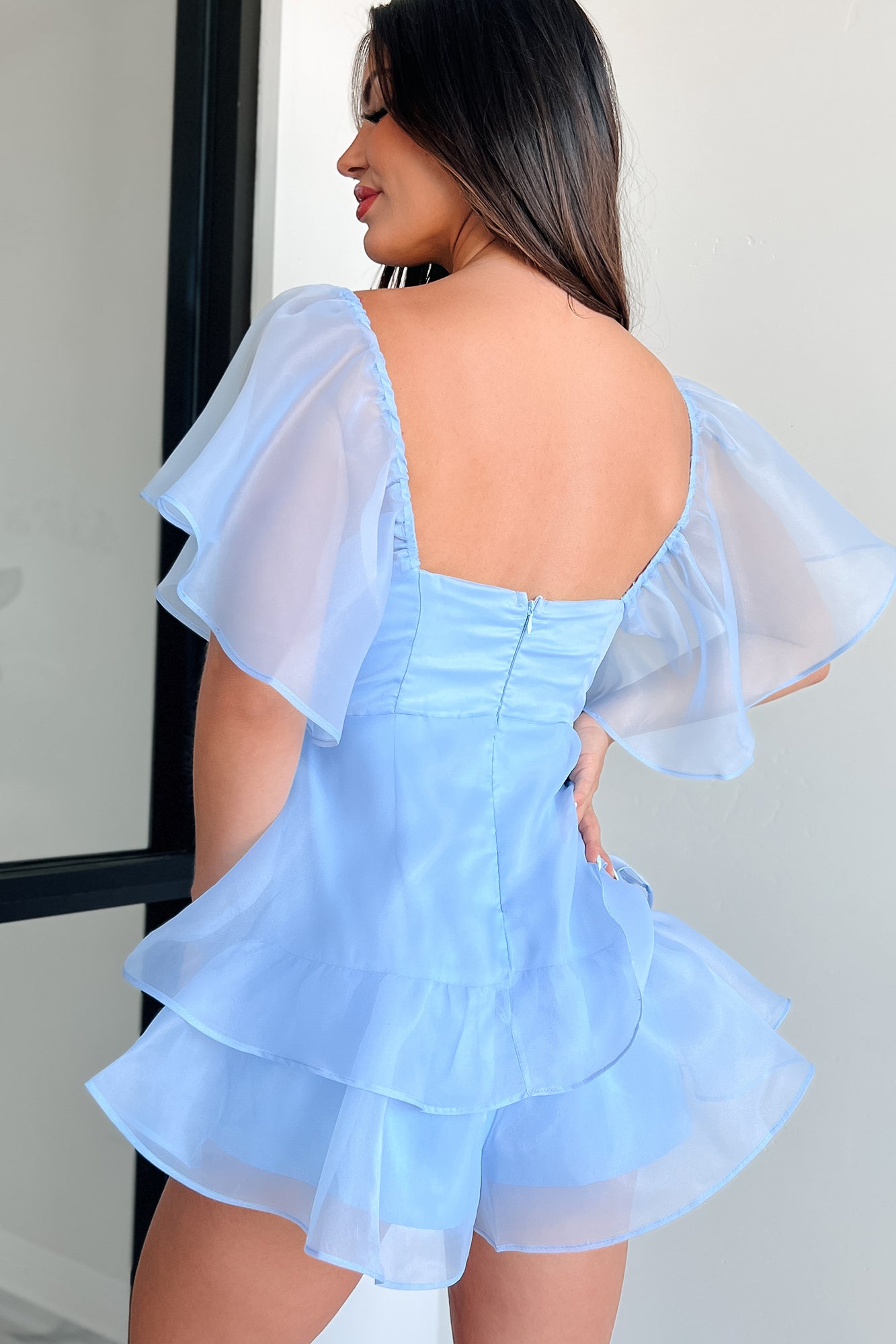 - Ruffled Sleeves With Elastic Shoulders