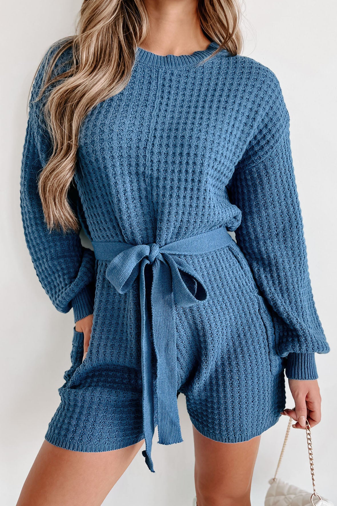 Beyond Boundaries Hooded Waffle Knit Romper (Dusty Blue)